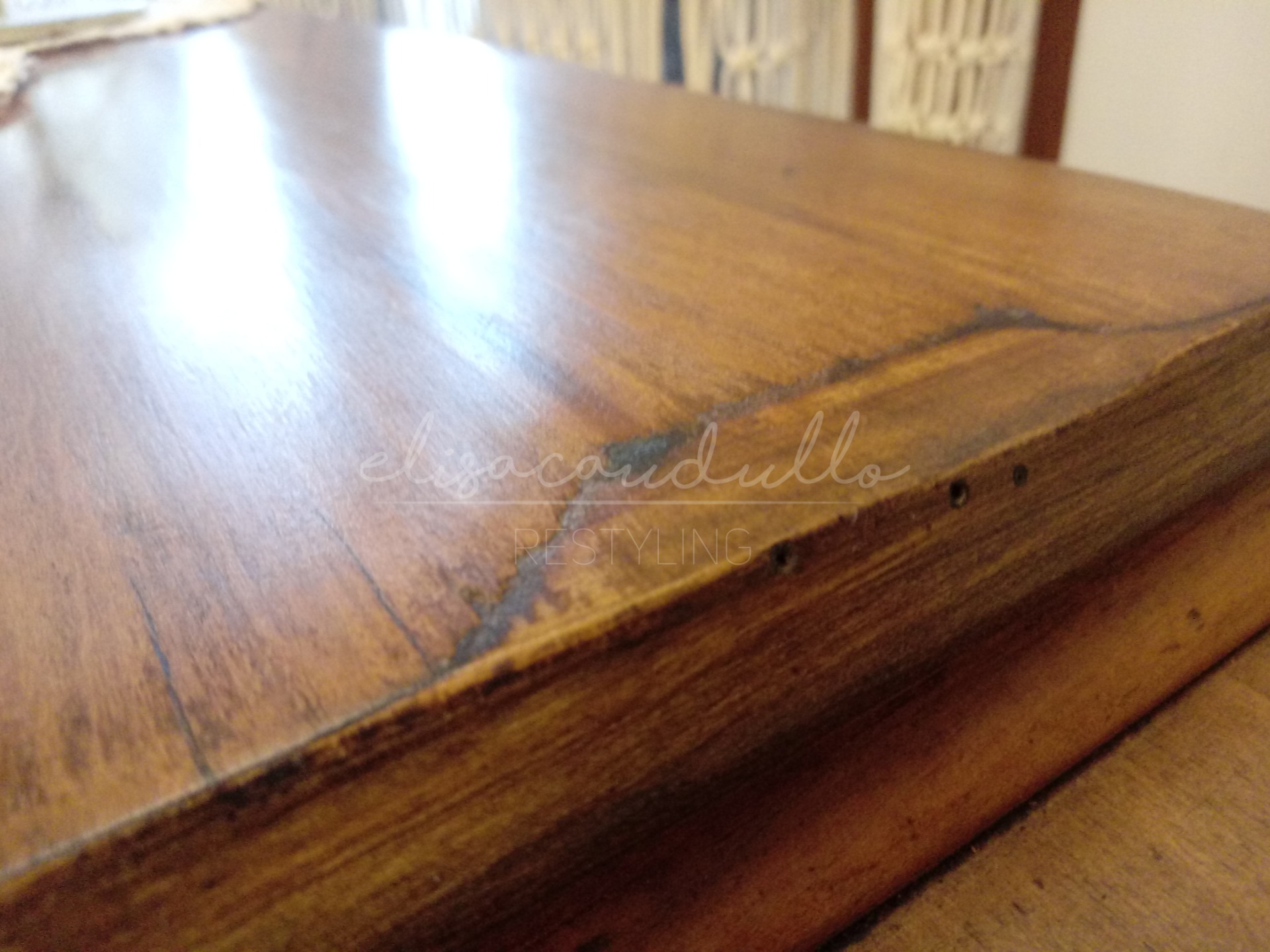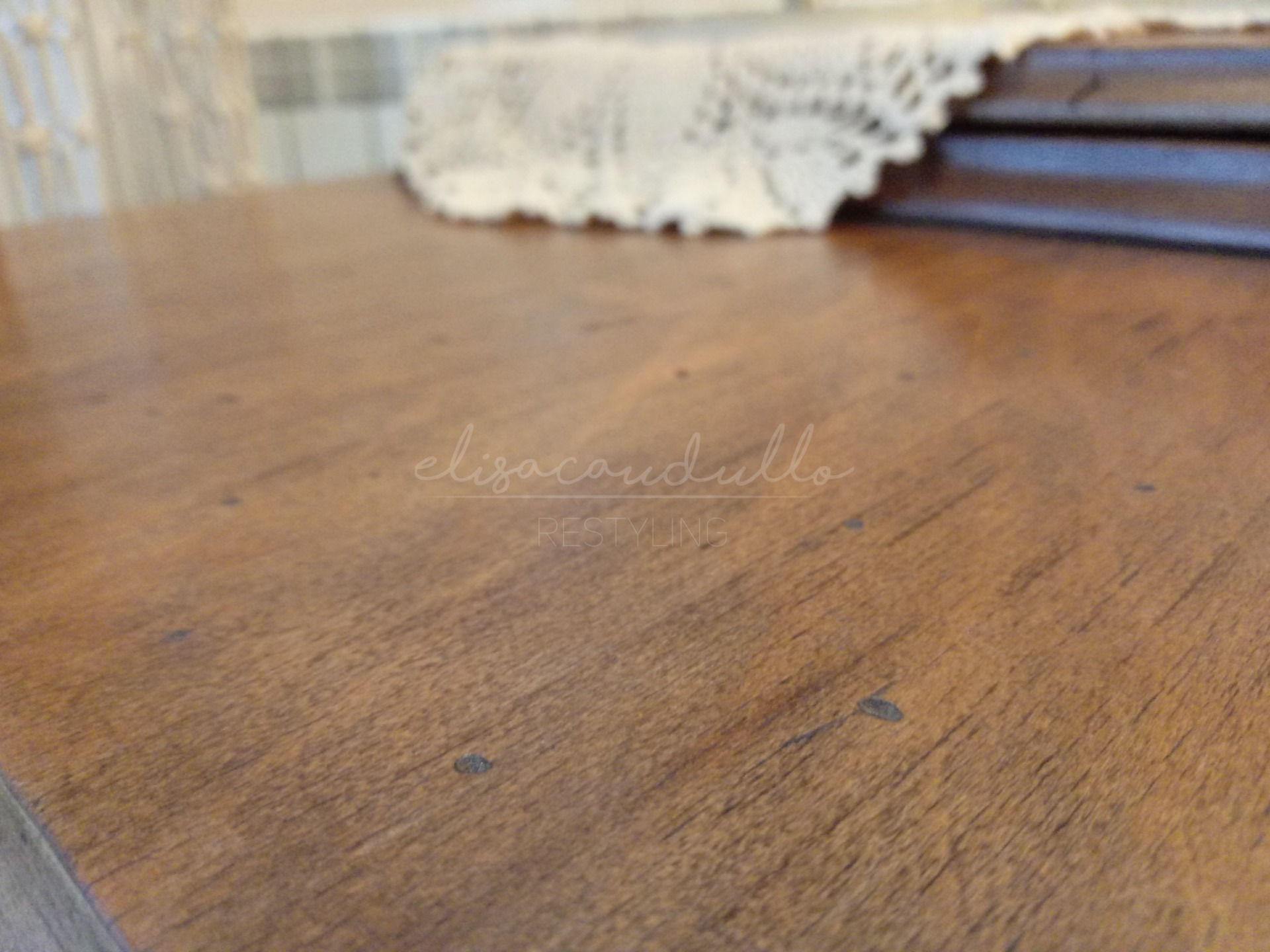 L'ho massaggiata e lucidata più e più volte con cera liquida noce scuro per tonalizzarla un po', e con cera netutra per proteggerla ulteriormente.