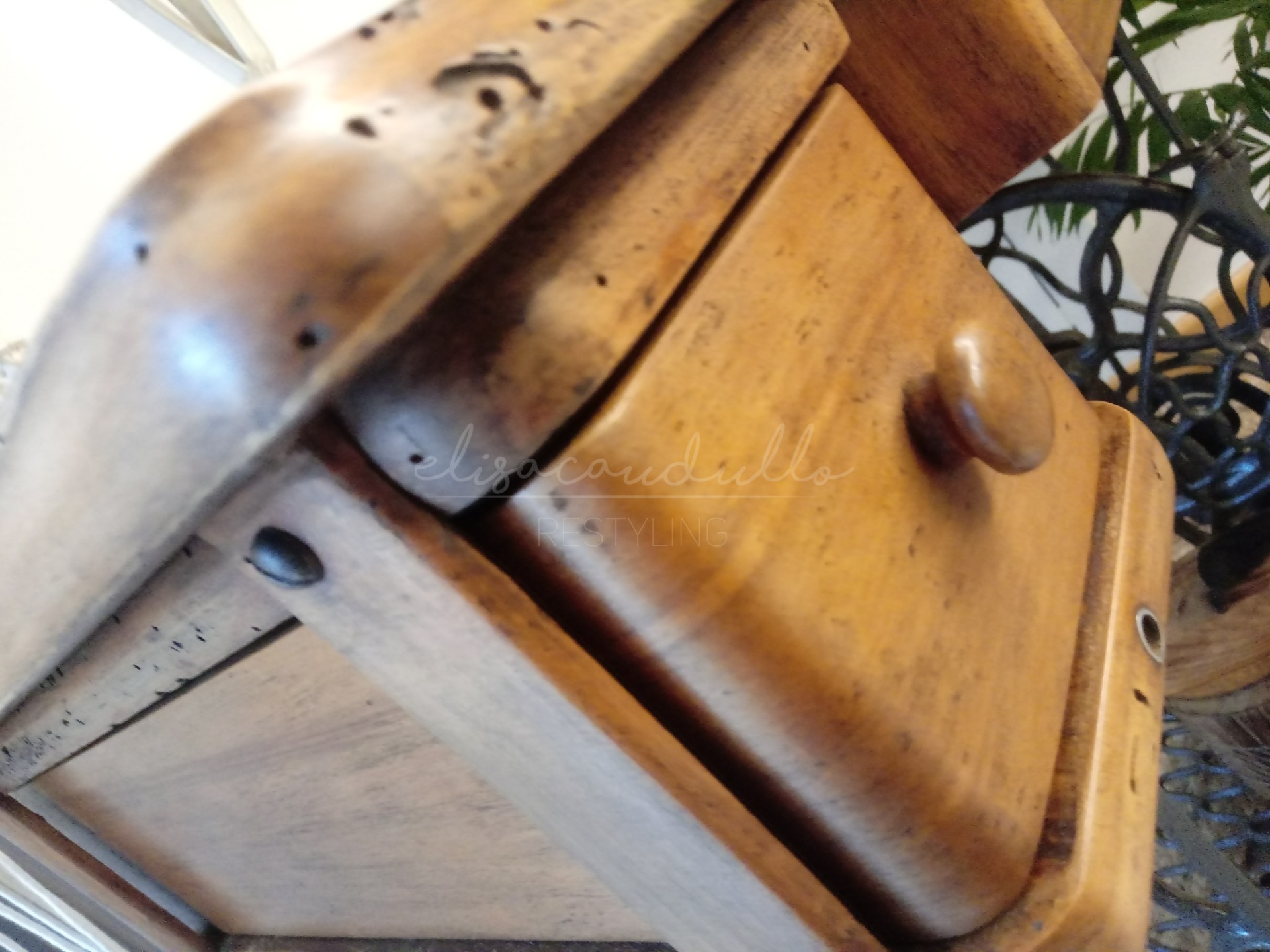 Riportando a legno grezzo questa bellissima Singer sono venute fuori delle eleganti venature rigate scure contrastate da toni più chiari.